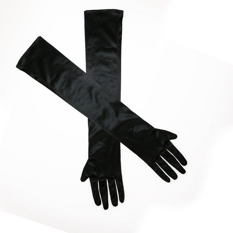 22 Inch Long Satin Elbow Stretch Glove Bridal Wedding Fancy Prom Black