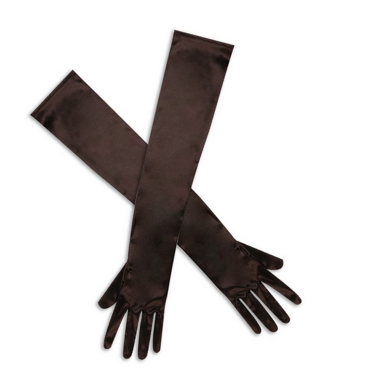 22 Inch Long Satin Elbow Stretch Glove Bridal Wedding Fancy Prom Coffee