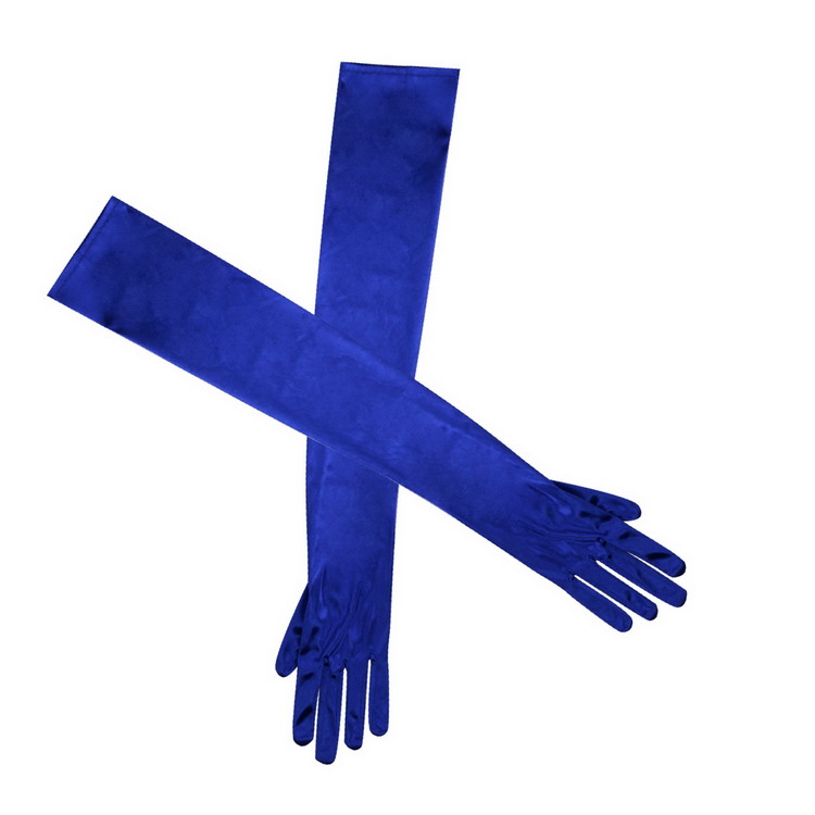 22 Inch Long Satin Elbow Stretch Glove Bridal Wedding Fancy Prom Blue
