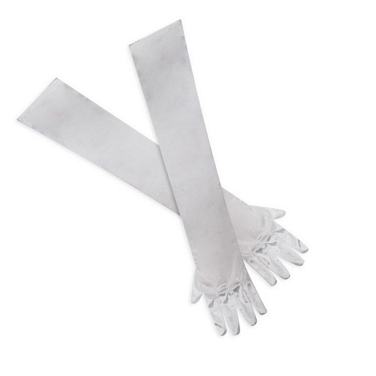 22 Inch Long Satin Elbow Stretch Glove Bridal Wedding Fancy Prom Silver