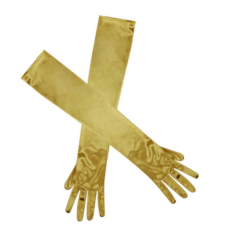 22 Inch Long Satin Elbow Stretch Glove Bridal Wedding Fancy Prom Gold