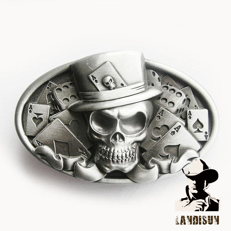Landisun Handmade Casino Poker Skull Wearing A Hat Belt Buckle