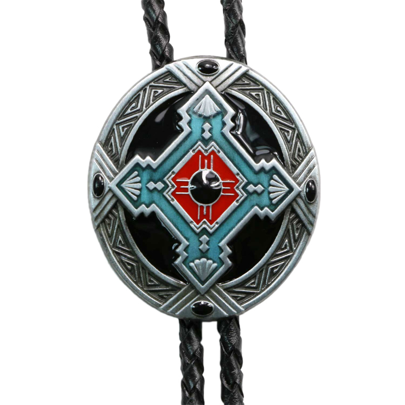 Landisun Handmade Oval Southwest Totem Cross Pattern Western Cowboy Bolo Tie