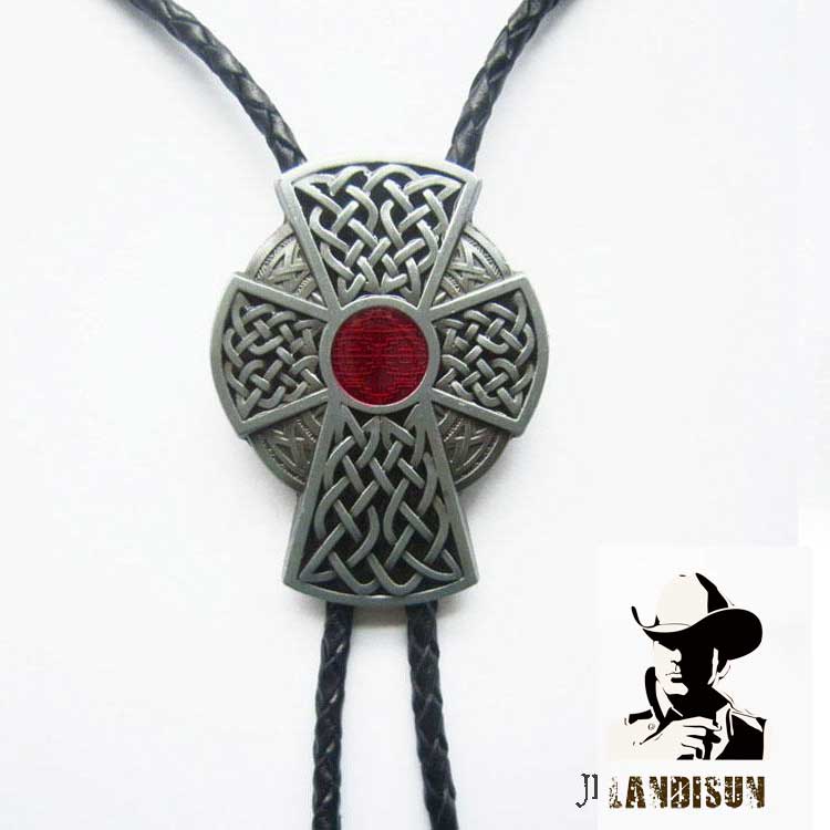 Landisun Handmade Celtic Cross With Red Dot Western Cowboy Bolo Tie