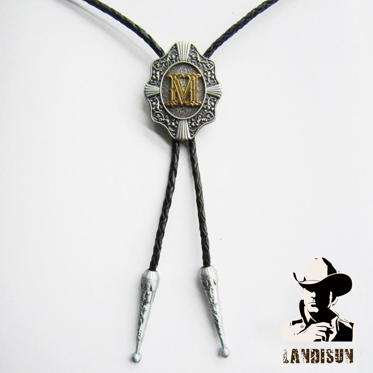 Landisun Handmade Classical Element Western Cowboy Bolo Tie Golden Letter M