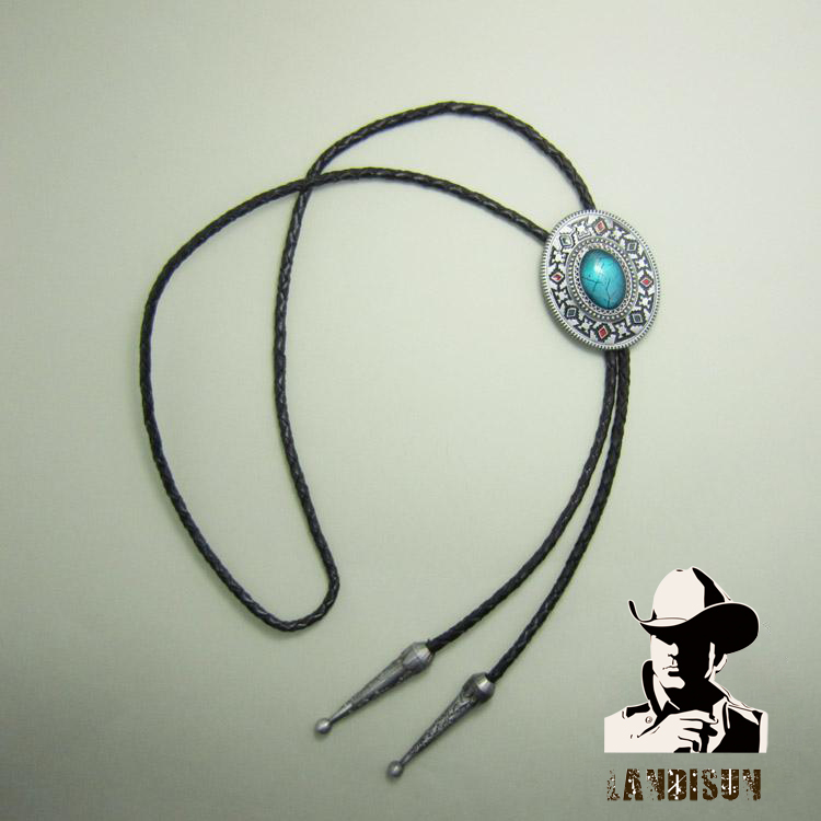 Landisun Handmade Southwest Totem Aquamarine Western Cowboy Bolo Tie